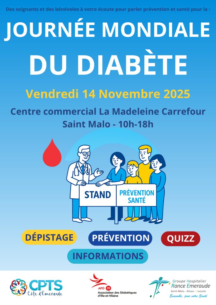 Après avoir proposé un stand de prévention à Saint Malo pour la journée mondiale du diabète, la CPTS vous aide à comprendre cette maladie.